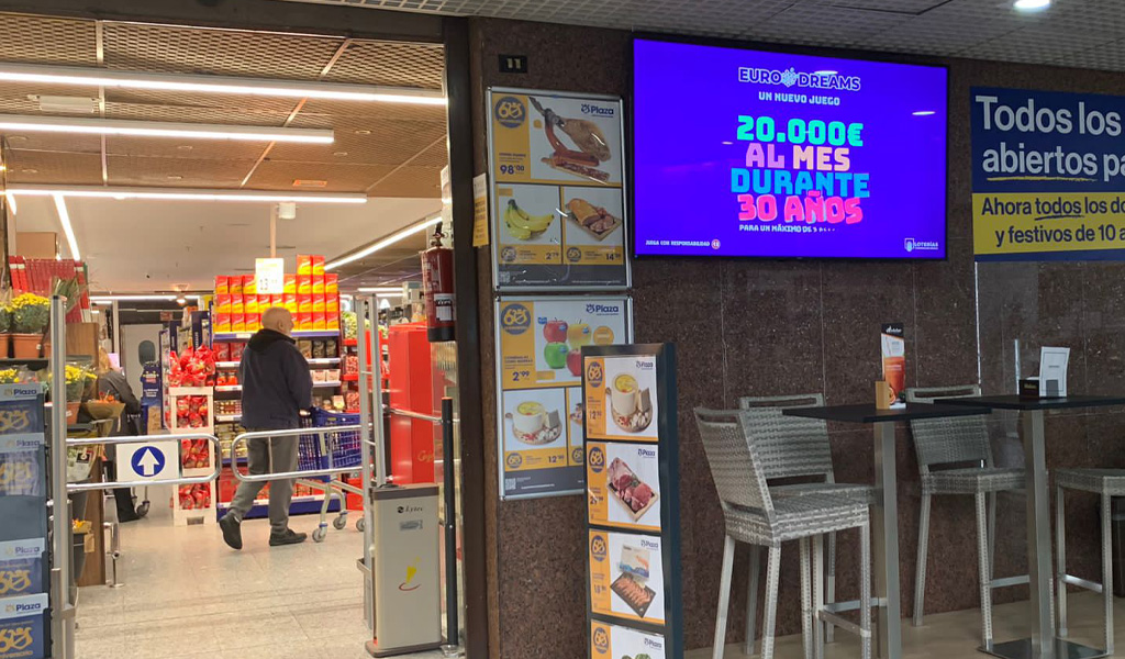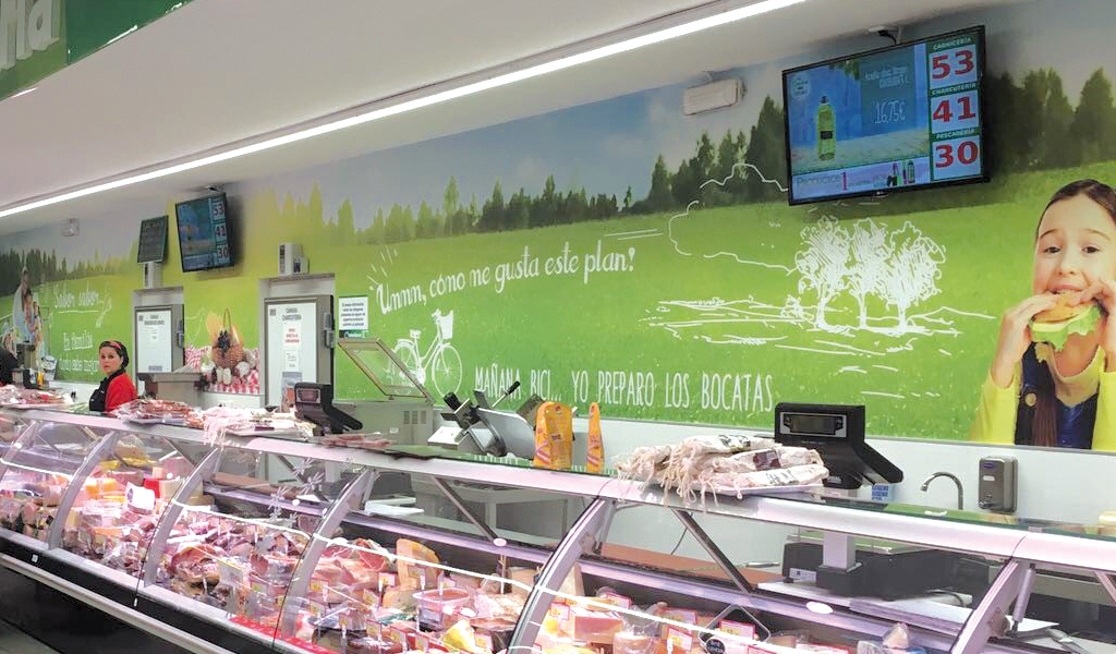 Circuito de soportes digitales en supermercados de proximidad.